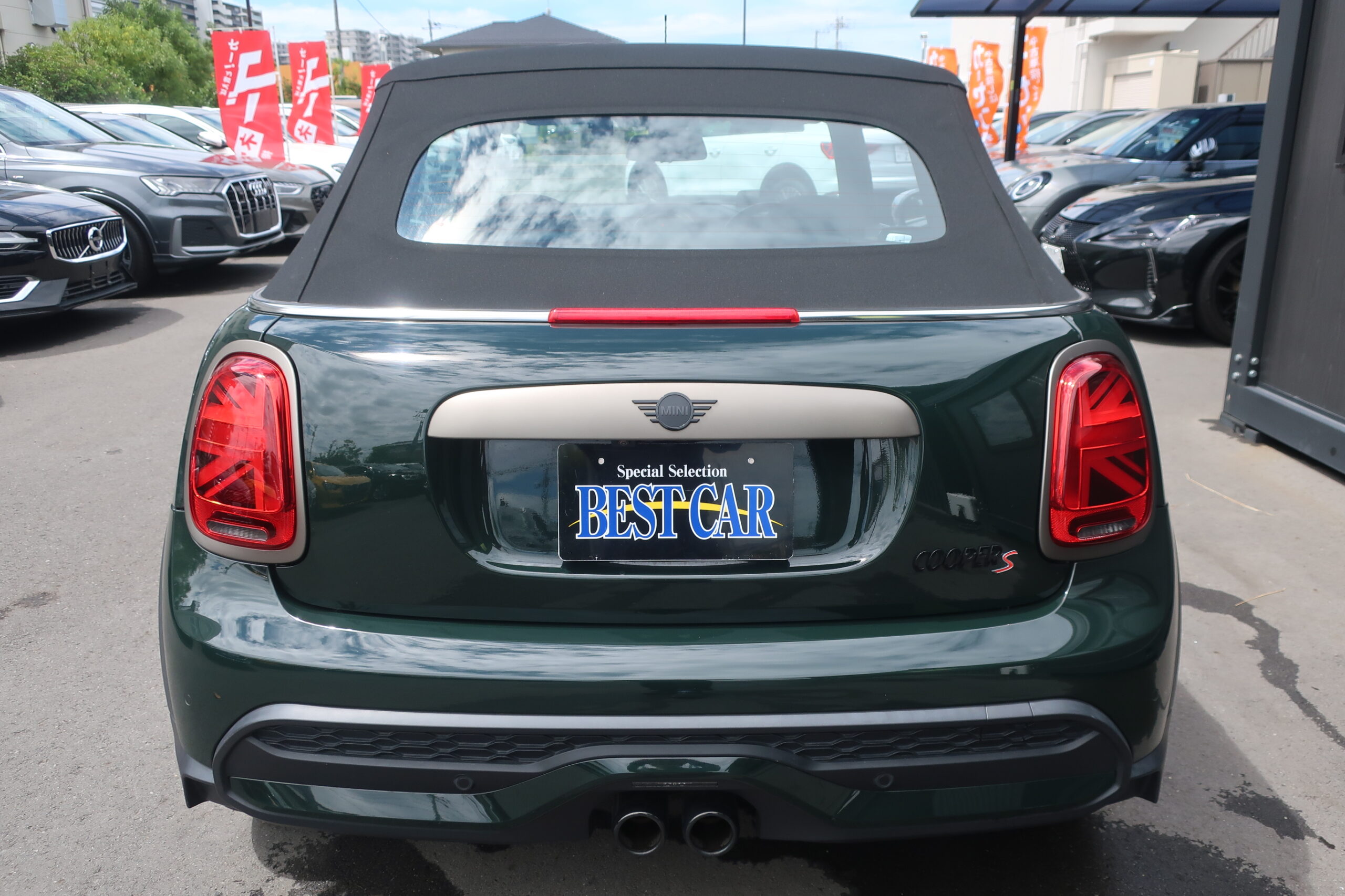 電動ソフトトップオープンカー 特別仕様限定車 アップルカープレイ対応ディスプレイオーディオ USB Bトゥース Bカメラ ドラレコ ミラー型ETC 専用インテリア ハーフレザーシート シートヒーター 革巻きステア ヘッドアップディスプレイ LEDヘッドライト LEDライナー ユニオンジャックLEDテール 専用エアロバンパー 専用デュアルマフラー 純正18インチアルミ 内外装極上美車